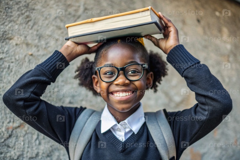 Красивая афроамериканская девушка с очками и книгами.Ребенок впервые ходит в школу.Ребёнок на свежем воздухе.Возвращение к школе