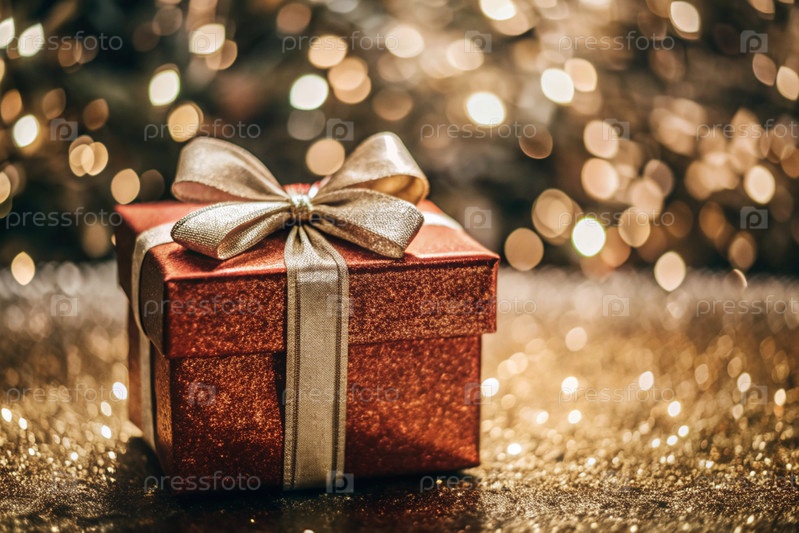 Подарочные красные блестящие коробки среди рождественских огней. уютная концепция для Рождества и зимних каникул в 2025 году. мы готовим подарки для наших близких