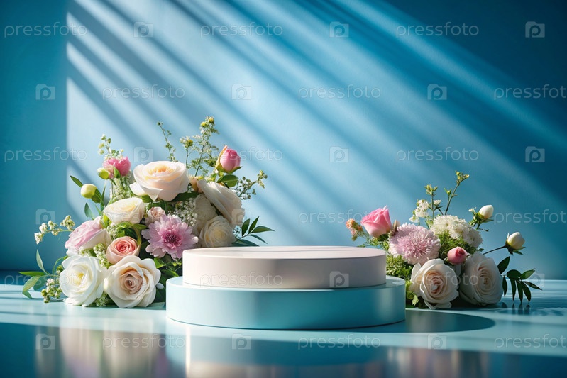Минимальный фон для демонстрации продукта.Современная яркая трибуна с синей стеной.Креативный дизайн для презентации продукции