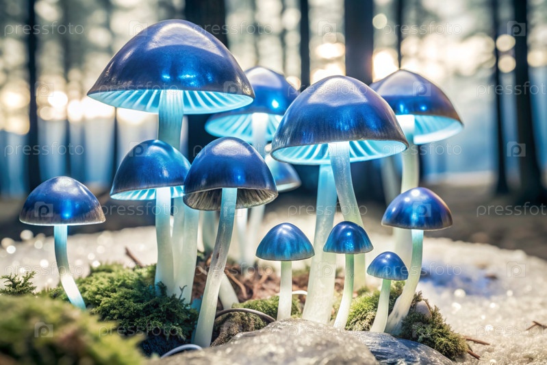 Ядовитые грибы. Жабы. Галлюциногенные грибы. Светящиеся грибы. Изображение для иллюстрации тем, связанных с природой, фантазией, сказками и магией
