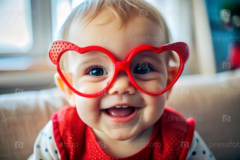 Милая девочка в стильных красных очках в форме сердца проводит веселый День святого Валентина