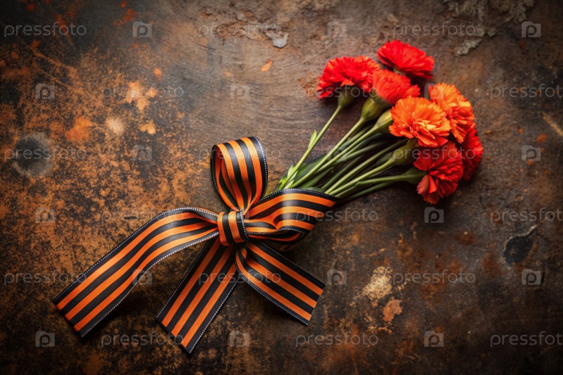 Знамя на 9 мая Красные гвозди и Георгиевская лента на старом фоне Концепция Дня Великой Победы 1941-1945 годов и День защитника Отечества