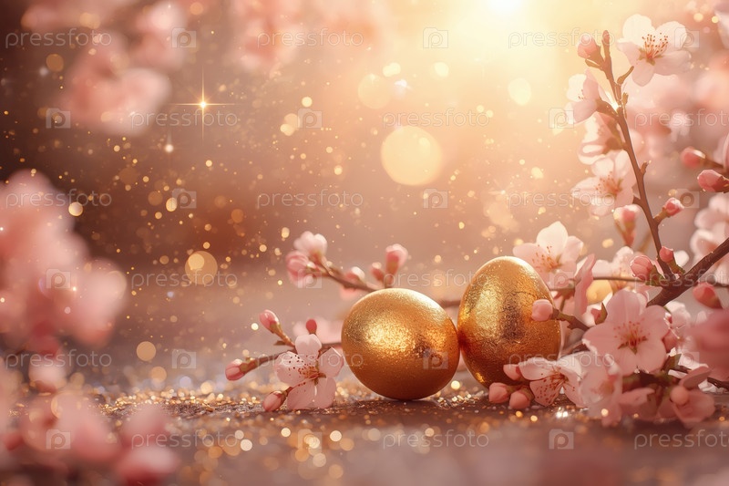 Концепция яркого пасхального праздника в 2026 году.Нежные розовые пасхальные яйца и вишневые ветви на деревянном фоне