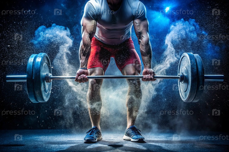 Соревнования по тяжелой атлетике. Спортсмен берет на себя большой вес штанги. Спорты летних Олимпийских игр