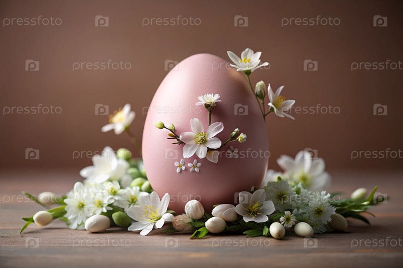 Концепция яркого пасхального праздника минималистична - розовое пасхальное яйцо с нежными белыми вишневыми цветами на тонком розовом фоне