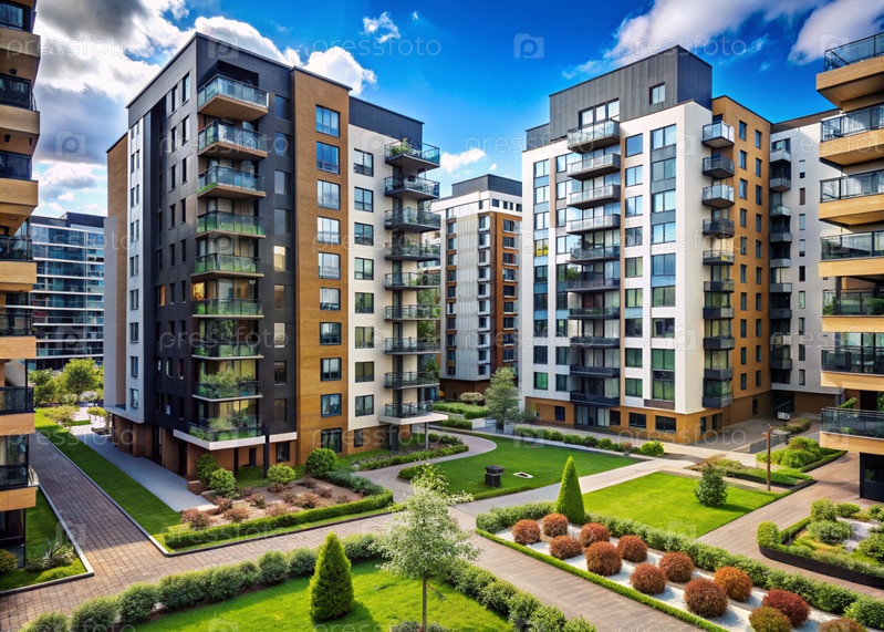 Современные многоэтажные жилые дома. Строительство новых жилых кварталов. Новые здания. Строительный бизнес. Ипотека для нового экологически чистого жилья