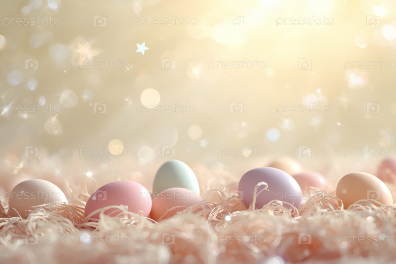 Концепция яркого и радостного Пасхального праздника в 2026 году.Нежные пасхальные яйца на фоне пастельной акварели