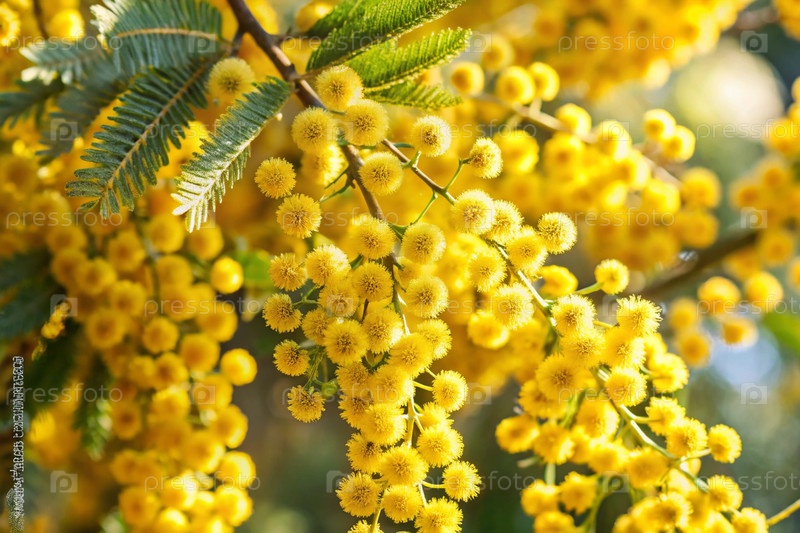 Красивый пушистый букет мимозы в вазе. Близко. Концепция домашней весны и Международный женский день 8 марта