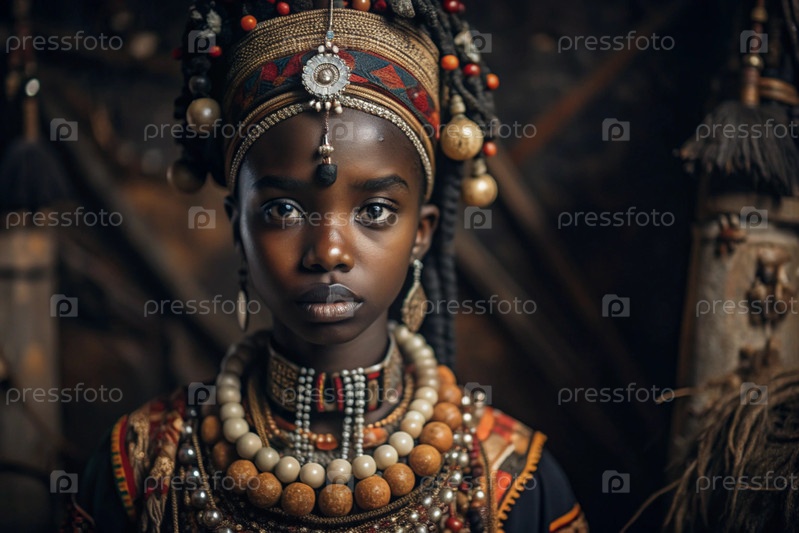 Красивая африканская девушка в традиционном национальном костюме. с костями. портрет символизирует традиции, культуру и красоту африканского народа