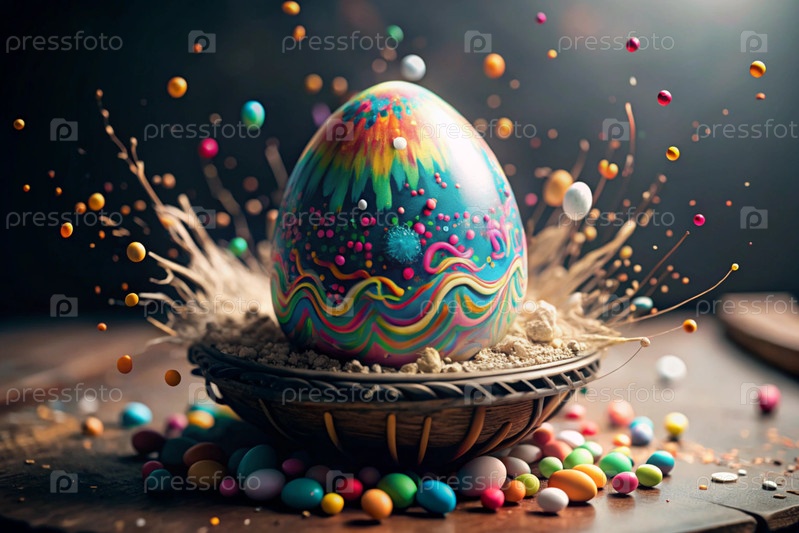 Пасхальный баннер. Концепция яркого пасхального праздника. Творческое абстрактное красочное пасхальное яйцо. Цветовой взрыв
