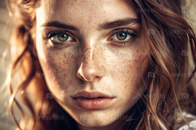 Глубокий эмоциональный портрет. Лицо молодой девушки без макияжа с выразительными глазами и кудрявыми коричневыми волосами. Естественная женская красота