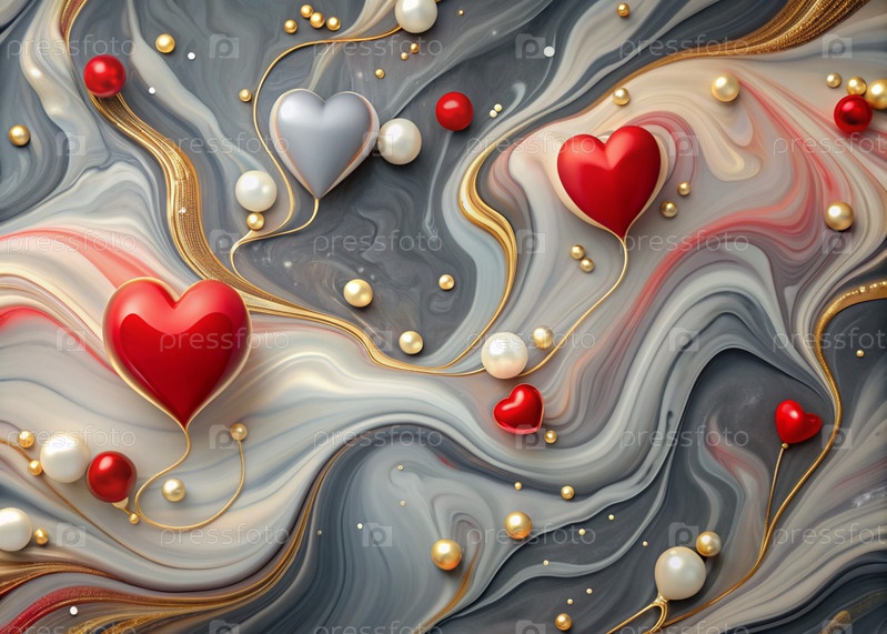 Знак на День святого Валентина. абстрактный фон. стильные мраморные полосы с красными сердцами. эпоксидная смола