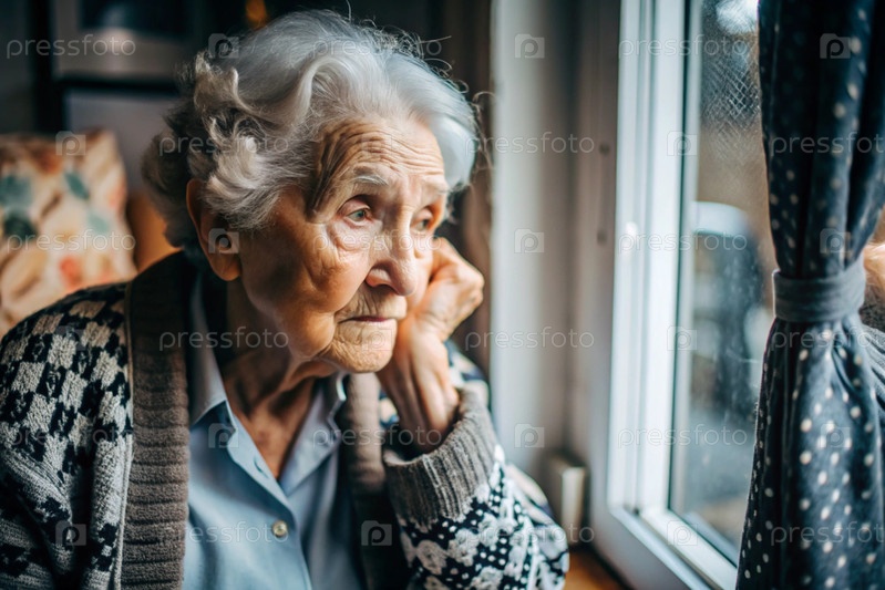 Минимализм.Портрет пожилой женщины, пенсионерки, концепция жизни пожилых людей, здоровье, одиночество и потеря памяти
