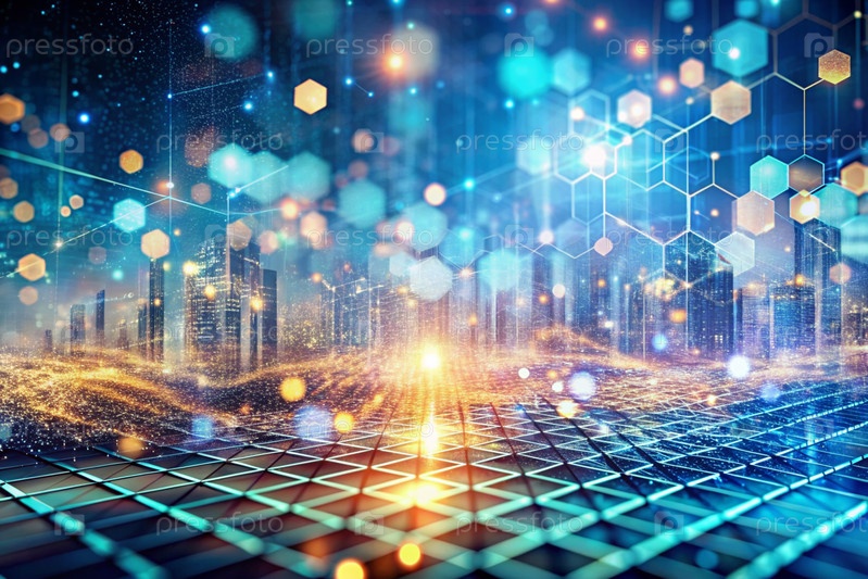 Высокотехнологичный материал. Близкий план клеточного рисунка с многоцветными огнями, создавая абстрактный и футуристический дизайн. Концепция развития и технологии будущего
