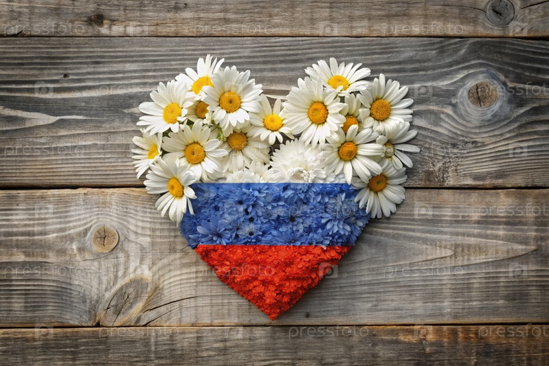 Всероссийский День семьи, любви, верности. Дези, сердце, российский флаг и трехцветная лента. День святого Валентина Петра и Февронии
