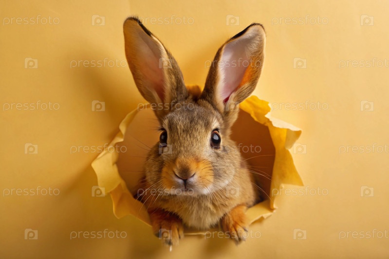 Известный праздник. милый пасхальный кролик заглядывает из разорванной дыры. концепция счастливой Пасхи