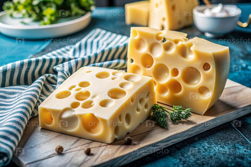 Сыр с Massadam отверстиями, кусок сыра на режущей доске