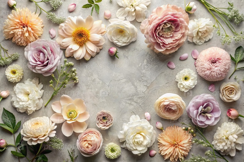 Красивый, воздушный, нежный цветочный фон в бежевых, кремовых и розовых тонах