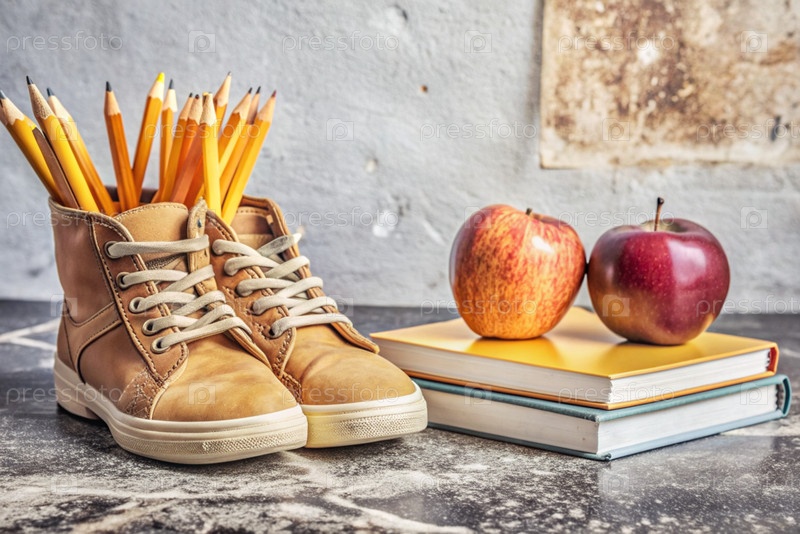 Праздник приходится на 1 сентября. рюкзак, кроссовки, яблоко и карандаши. вернемся в школу. концепция нового учебного года в школе. осенний день знаний