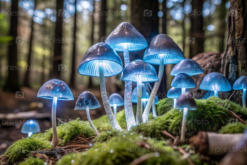 Ядовитые грибы. Жабы. Галлюциногенные грибы. Светящиеся грибы. Изображение для иллюстрации тем, связанных с природой, фантазией, сказками и магией