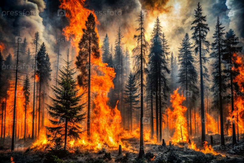 Опасность. Лесной пожар. Яркое пламя. Позаботьтесь о природе. Не разжигайте пожары в лесу