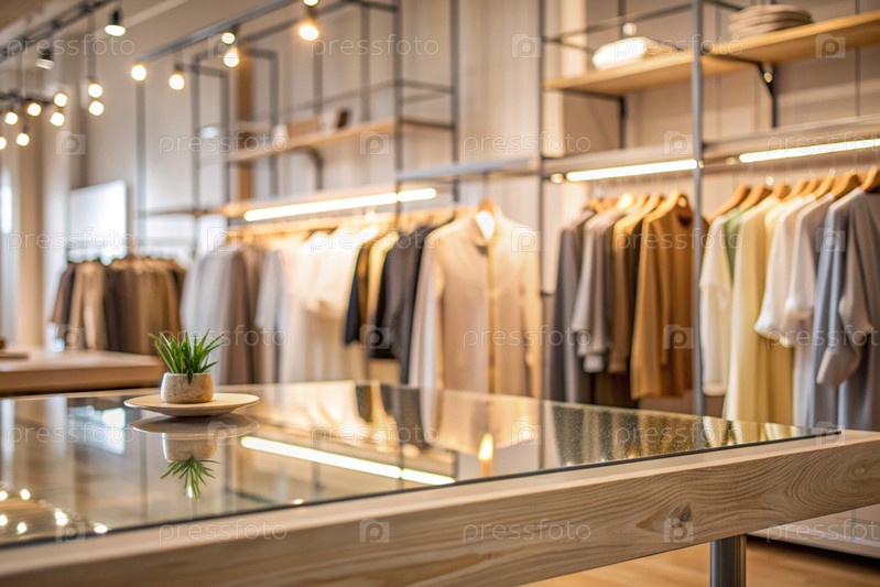 Минимальный фон для демонстрации продукта.Современный стеклянный подиум со стеклянной стеной в современном магазине одежды.Элегантный дизайн для презентации продукции