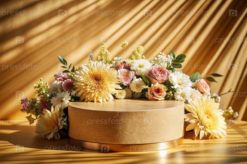 Минимальный фон для демонстрации продукта.Современный яркий подиум с цветами.Креативный дизайн для презентации продукции