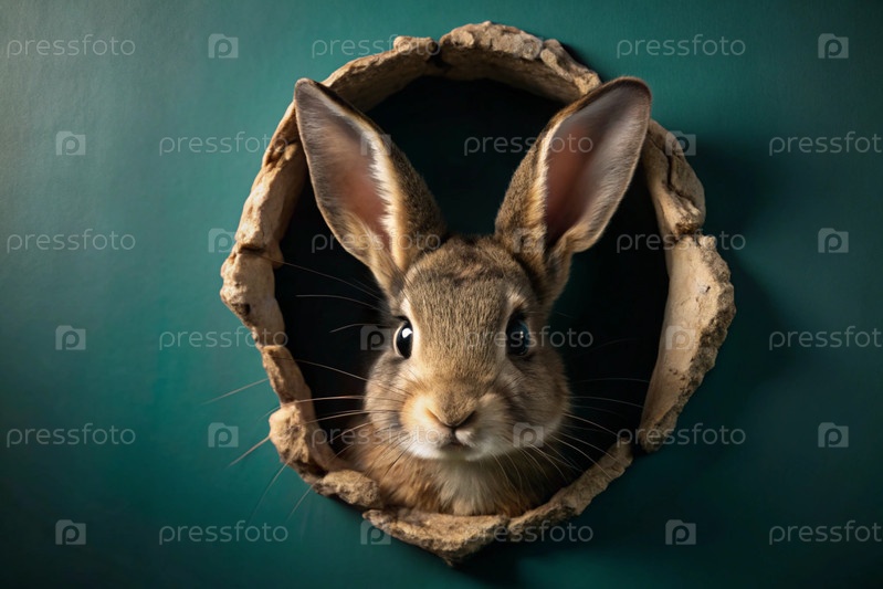 Известный праздник. милый пасхальный кролик заглядывает из разорванной дыры. концепция счастливой Пасхи