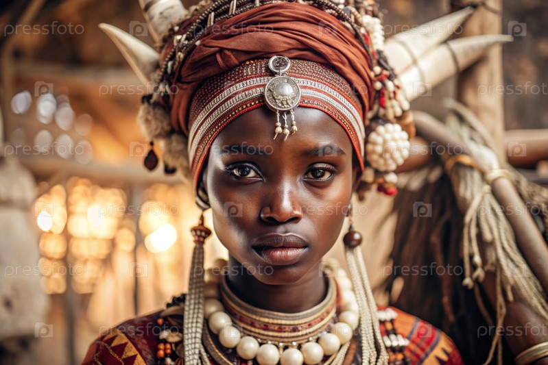 Красивая африканская девушка в традиционном национальном костюме. с костями. портрет символизирует традиции, культуру и красоту африканского народа
