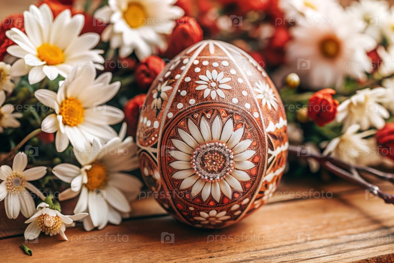 Пасхальный баннер. Концепция яркого пасхального праздника. Необычное деликатное пасхальное яйцо с нежными белыми цветами