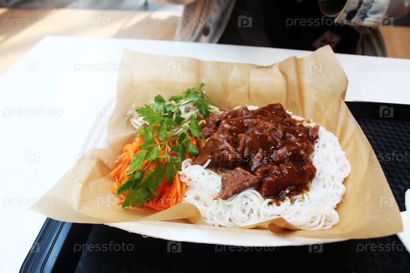 Японский сейтан встречает говяжью лапшу с пряным сладким соусом