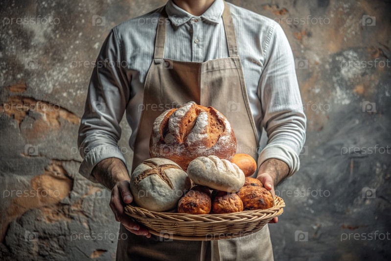Свежий вкусный хлеб в руках пекаря-мужчины на близком расстоянии. свежевыпеченный кислый хлеб с золотой корой. пекарня со вкусным хлебом. кондитерские изделия