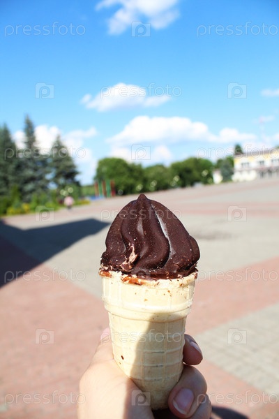 Мороженое в руке, холодный десерт летом