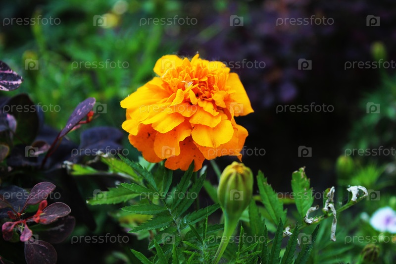 Tagetes erecta marigold цветок ярко-желтый на зеленом фоне