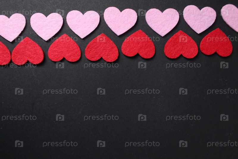 Черный фон с красным и розовым сердцем, пространство для текста, место для копирования
