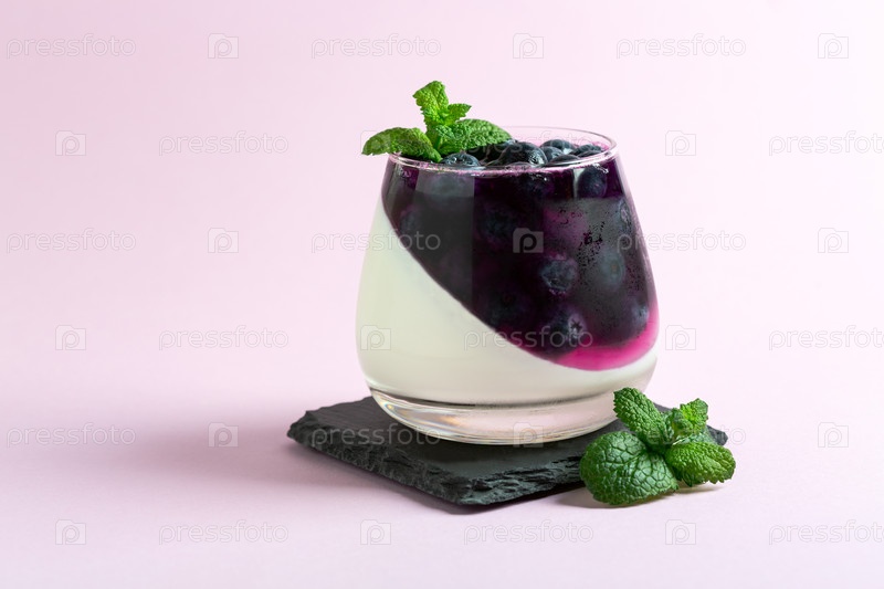 Итальянский десерт panna cotta с ягодными и сливочными слоями