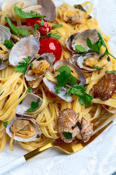 Лингвиновая паста с помидорами из вонголы и вишней