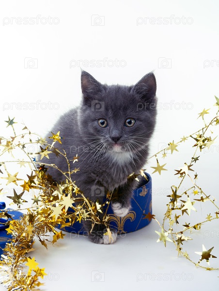 Серый рождественский котенок