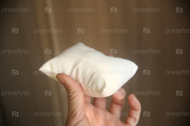 Рука женщины держит маленькую белую подушку