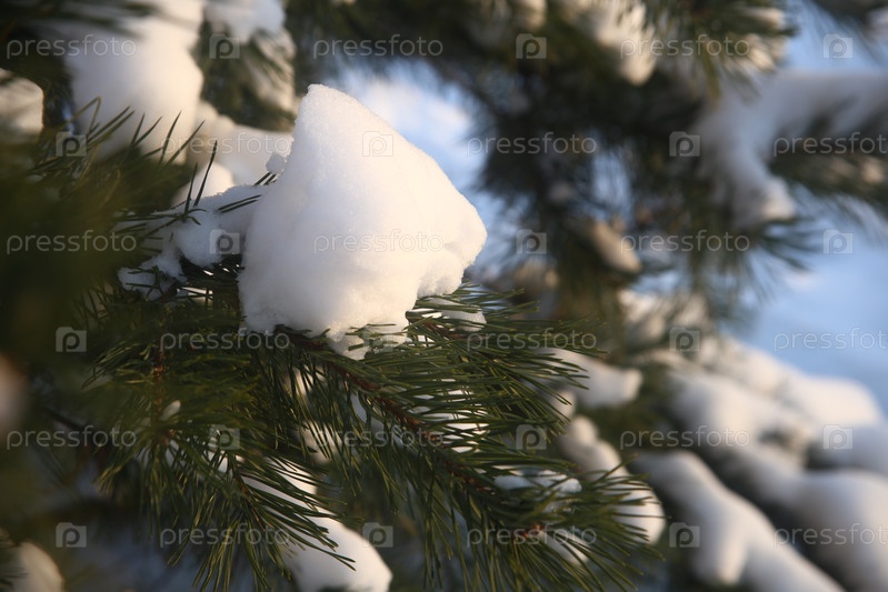 Зимний пейзаж с заснеженными деревьями и ветвями