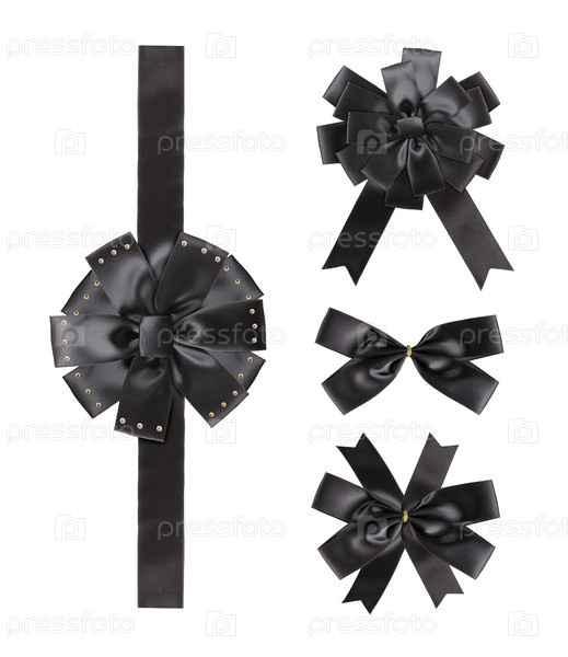 Набор декоративных черных шелковых луков, изолированный на белом фоне