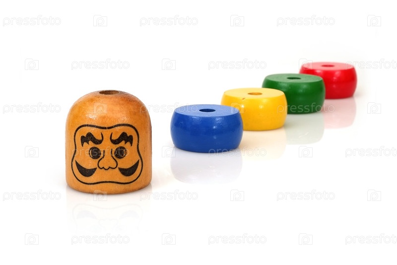 Детская игрушка заложила кольцевую башню 'Японский самурай', изолированную на белом фоне для создания графического дизайна