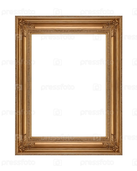 Золотая рама для картин, зеркал или фотографий, изолированных на белом фоне