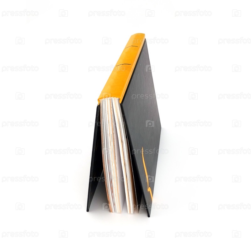 Книга в цветной обложке с белыми листами, изолированными на белом фоне