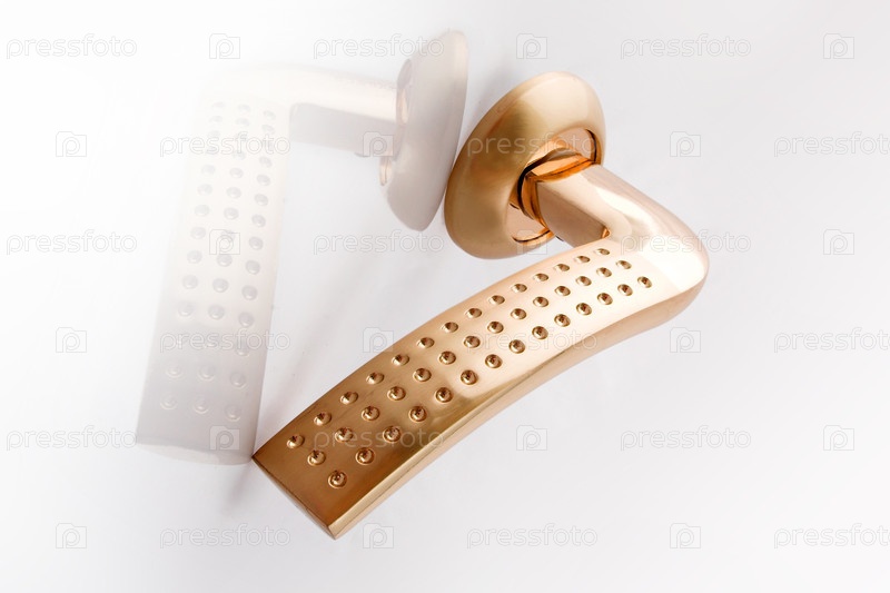 Золотая дверная ручка изолирована на белом фоне