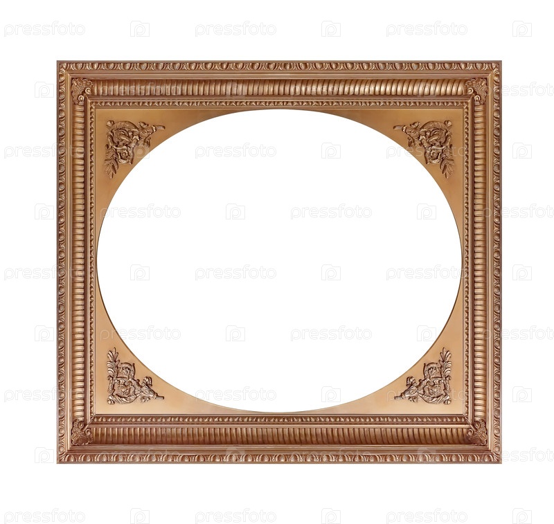 Золотая рама для картин, зеркал или фотографий, изолированных на белом фоне