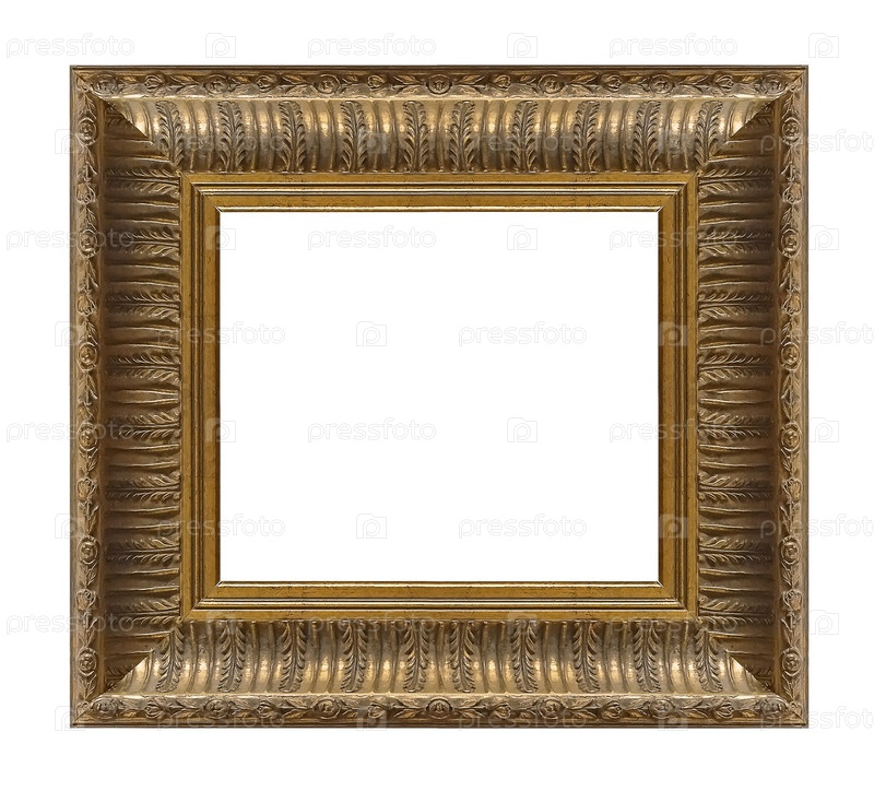 Золотая рама для картин, зеркал или фотографий, изолированных на белом фоне