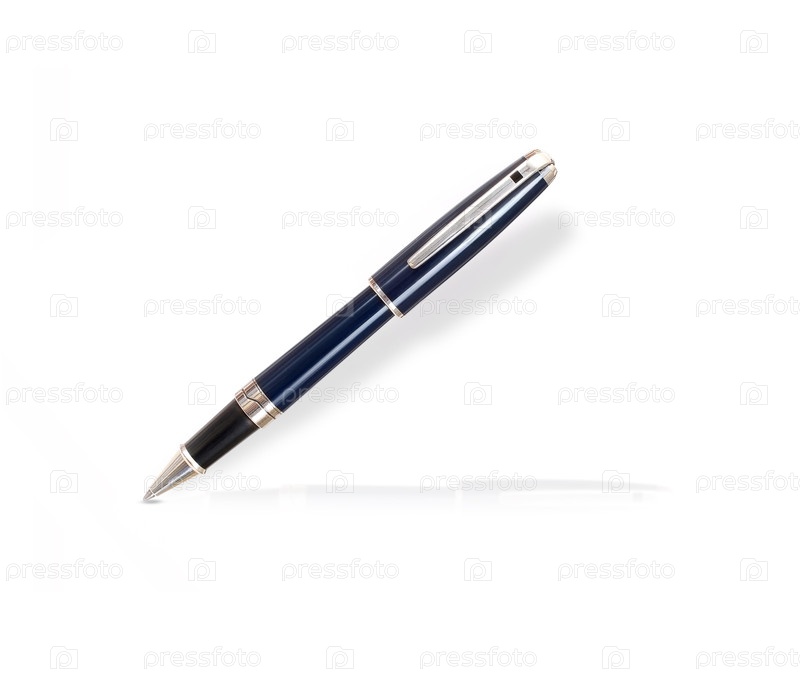 Синяя шариковая ручка изолирована на белом фоне