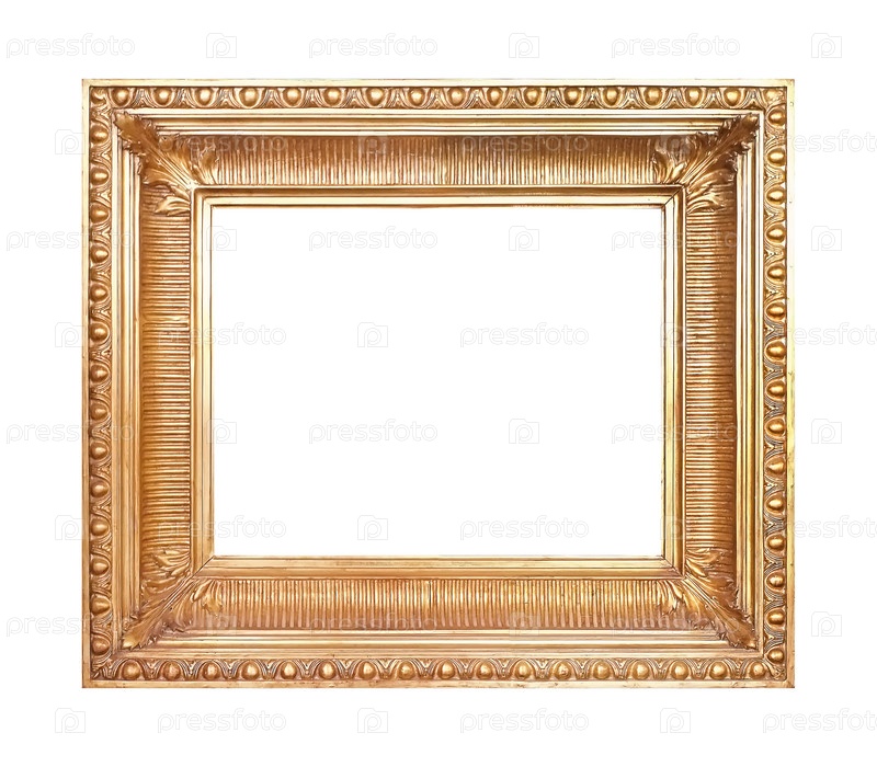 Золотая рама для картин, зеркал или фотографий, изолированных на белом фоне