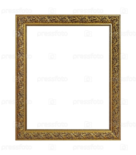 Золотая рама для картин, зеркал или фотографий, изолированных на белом фоне